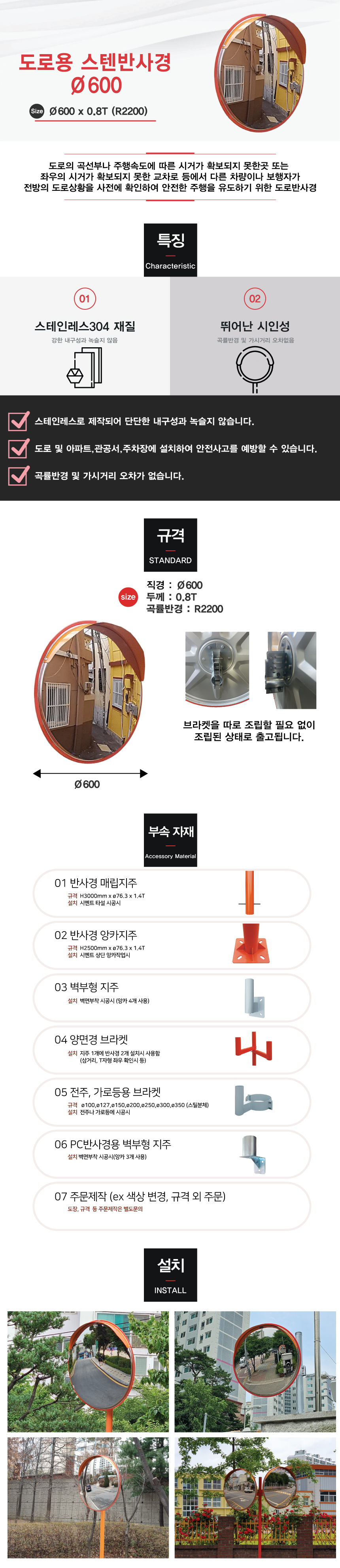 [H-13 반사경 스텐 반사경(도로용)/ 도로설치 권장합니다] 도로스텐반사경Ø600