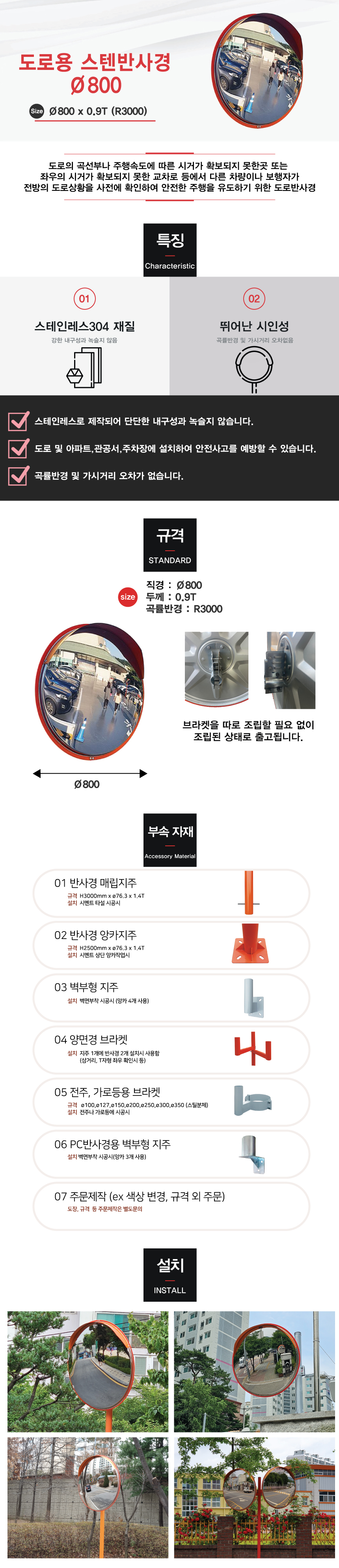 [H-13 반사경 스텐 반사경(도로용)/ 도로설치 권장합니다] 도로스텐반사경Ø800