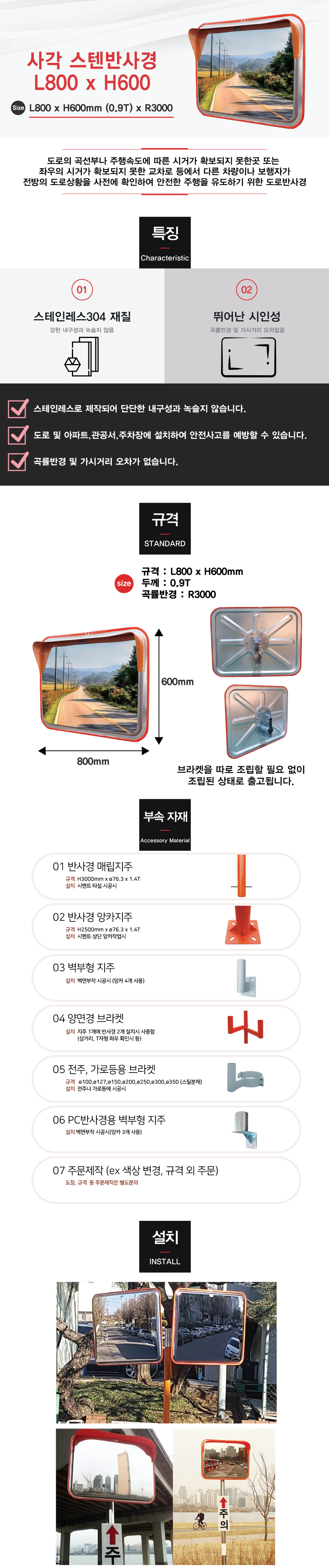 [H-13 반사경 스텐 반사경(도로용)/ 도로설치 권장합니다] 사각스텐반사경
