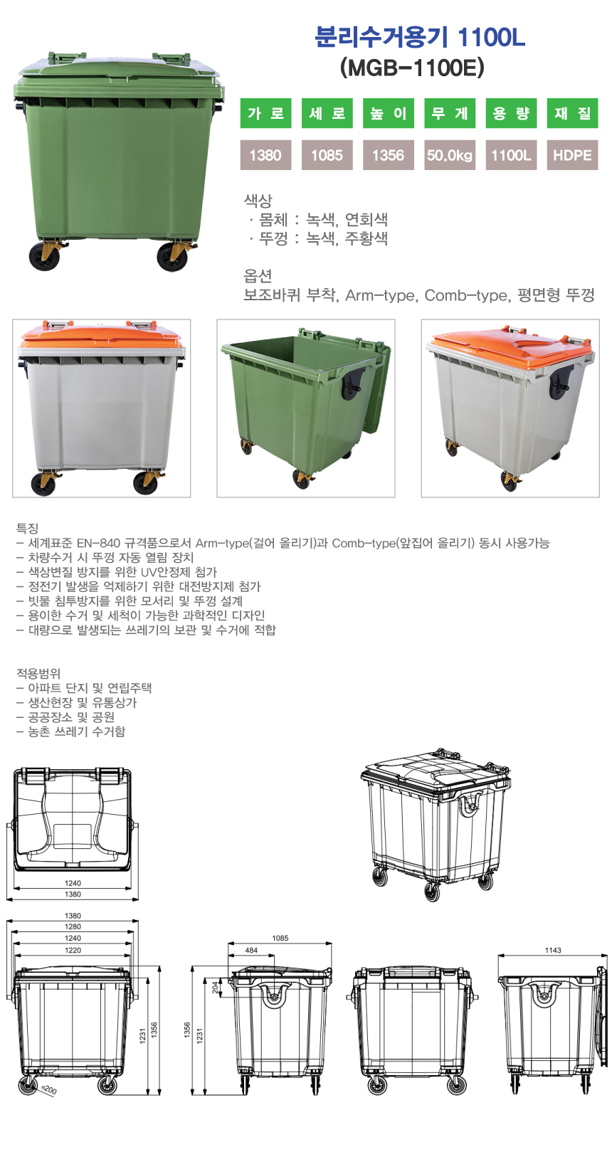 [H-22 쓰레기거치대(통) 실외용 쓰레기분리 수거함] 분리수거함 평면형(1100L)