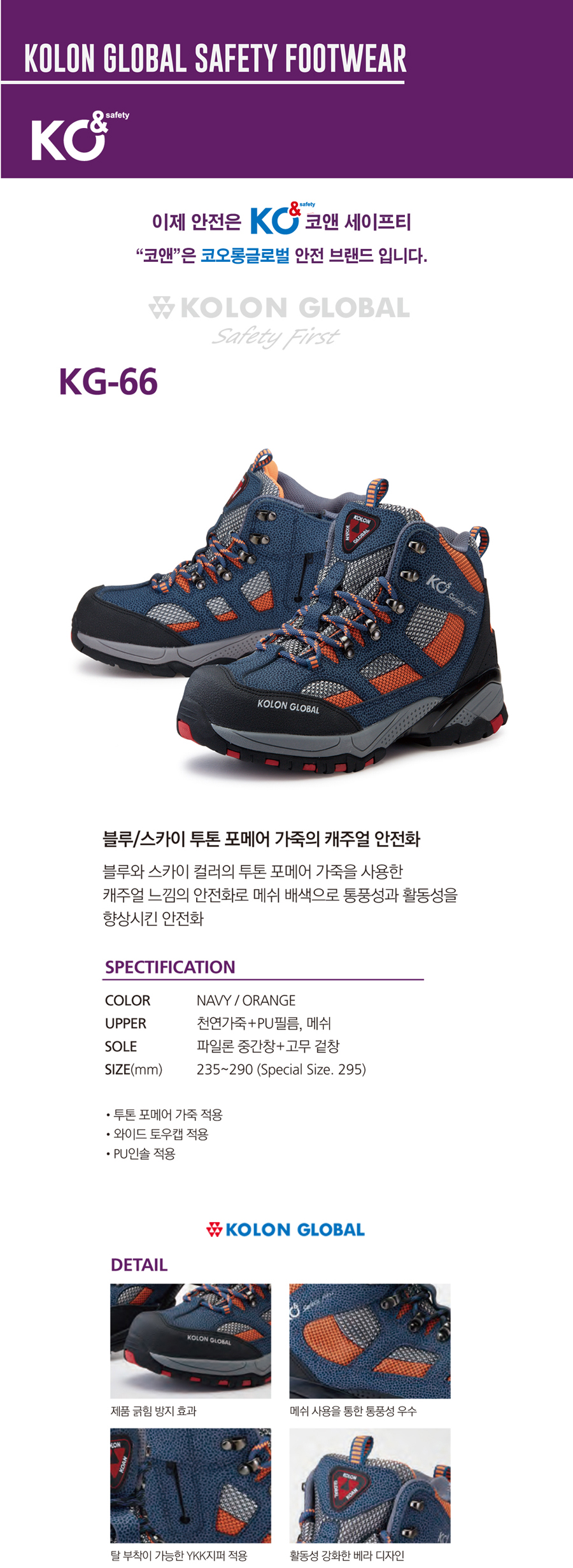 [H-4 안전화/안전모/걸이대 안전화/코오롱 공식대리점] 안전화KG-66