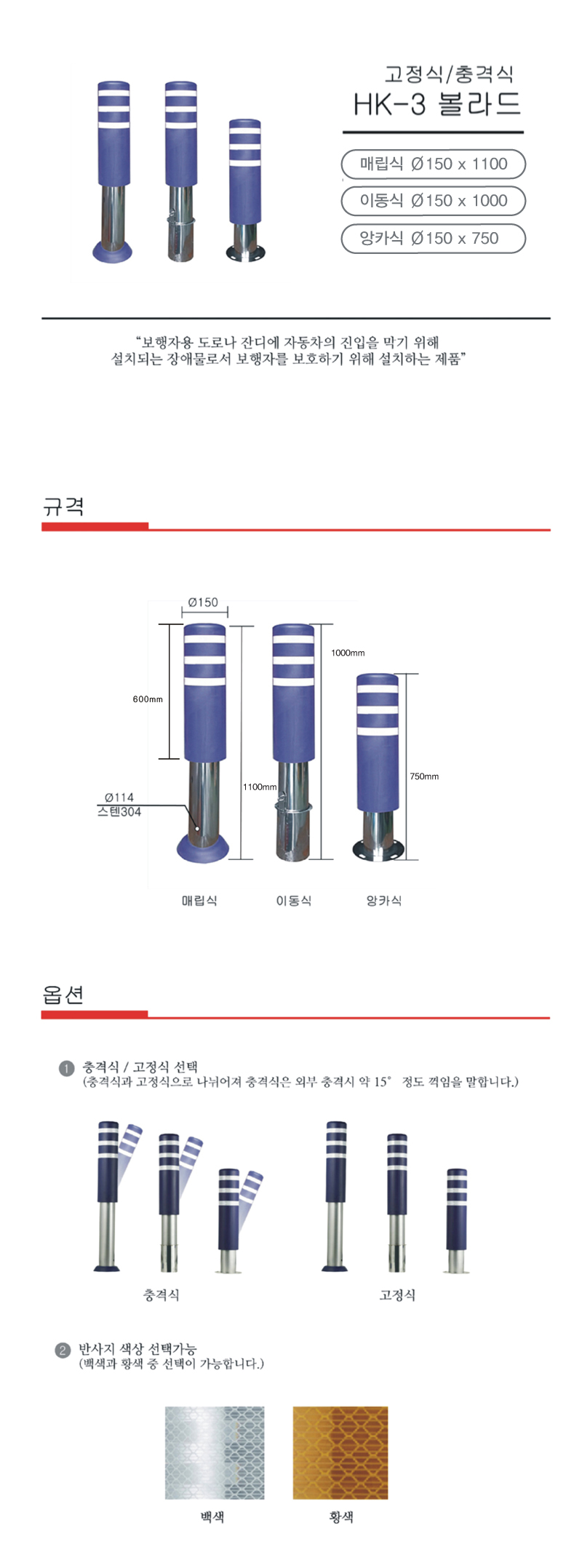 [H-9 탄성볼라드 HKB-3 볼라드] 고정식/스텐 HKB-3