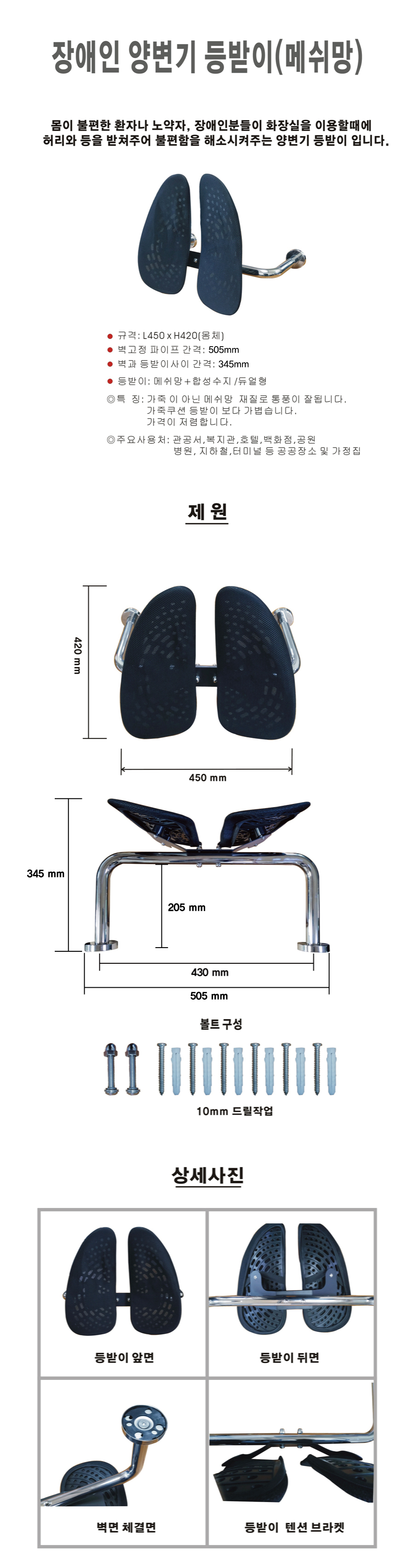[H-30 장애인편의시설 장애인손잡이(스텐)] 양변기등받이(메쉬망)