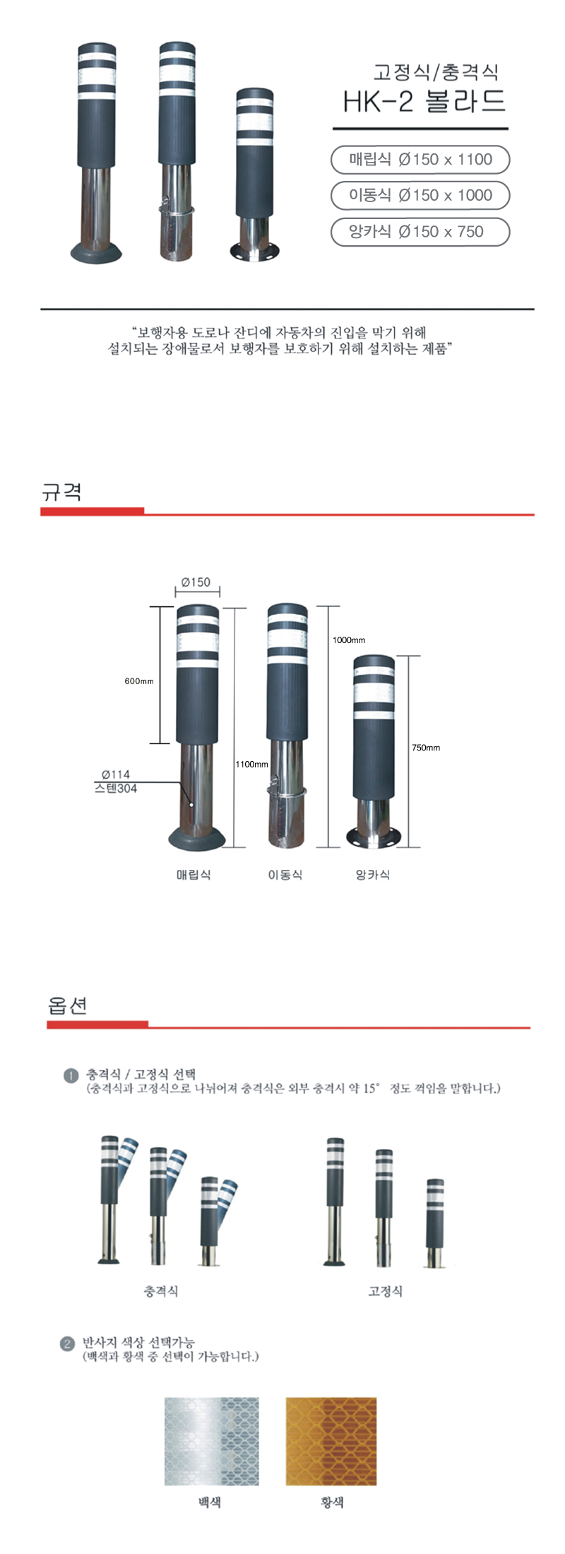 [H-9 탄성볼라드 HKB-2 볼라드] 충격식/스텐 HKB-2