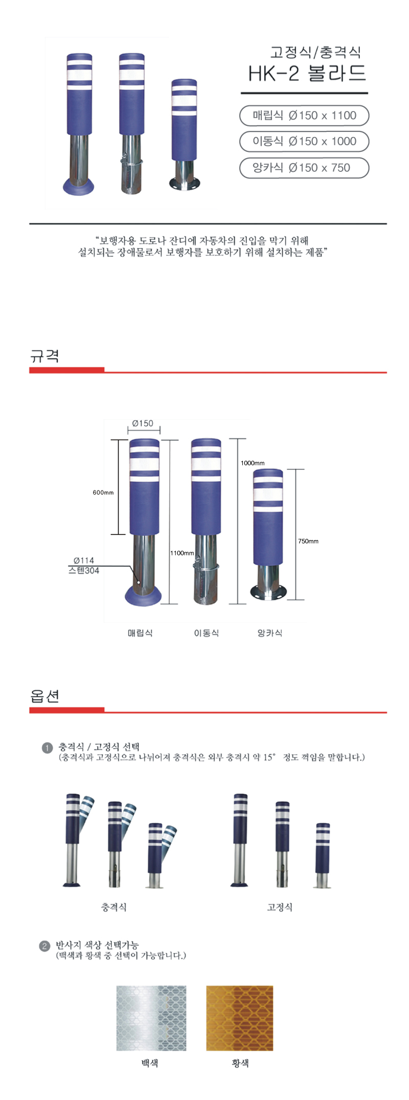 [H-9 탄성볼라드 HKB-2 볼라드] 충격식/스텐 HKB-2