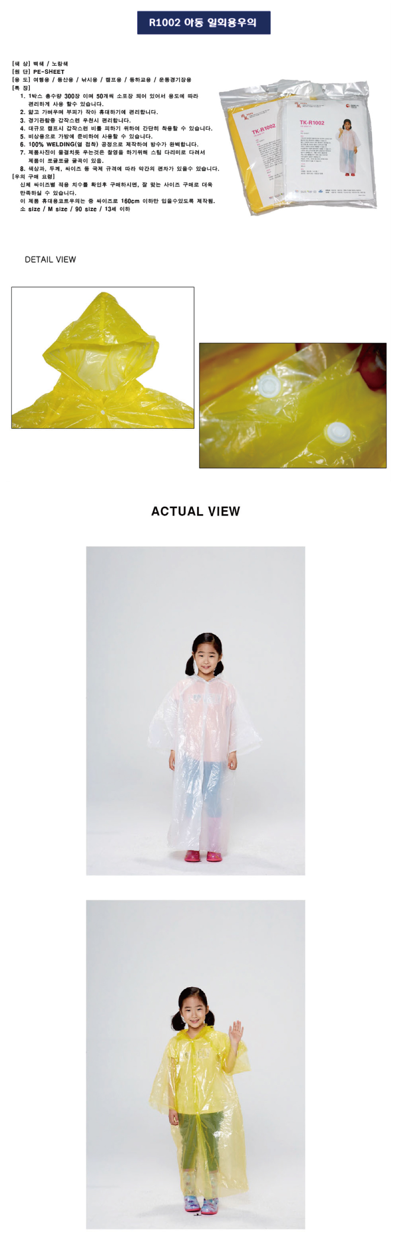 품명 TK-R1002 아동용 일회용우의