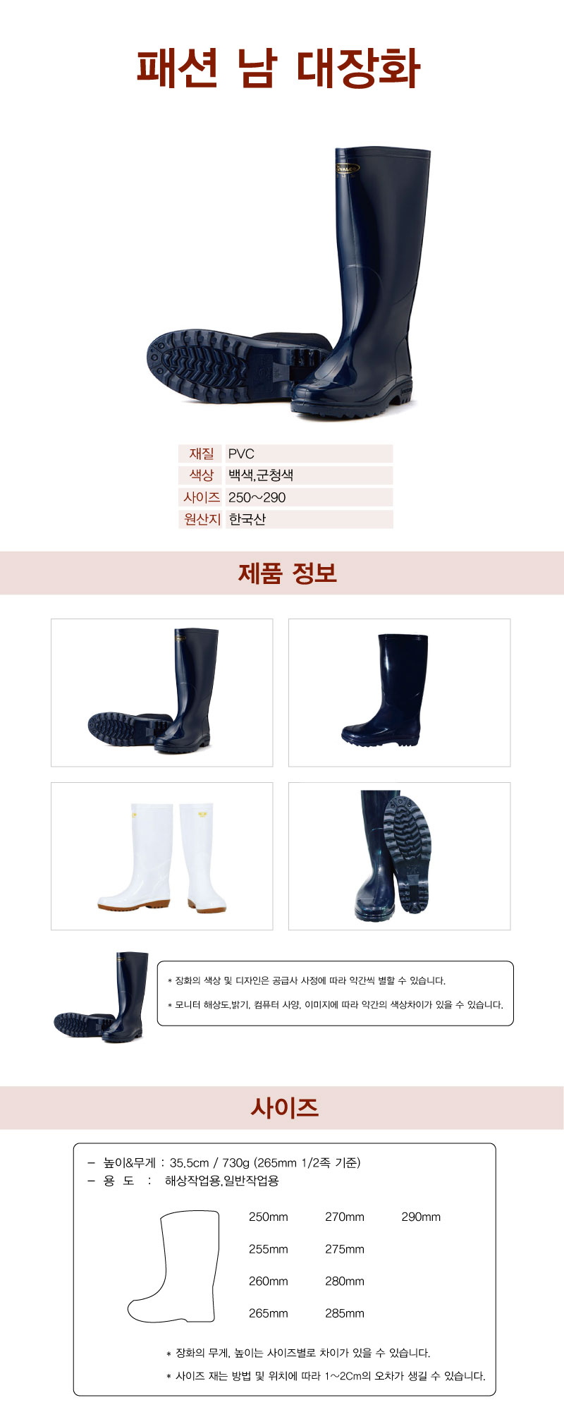 모델명 TK-B950 패션 남 대장화