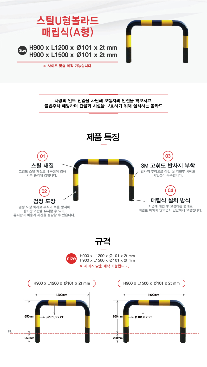 [H-46 추락방지(U형볼라드) 스틸U형볼라드 (특수 사이즈 주문가능)] 스틸U형볼라드 매립식(A형)