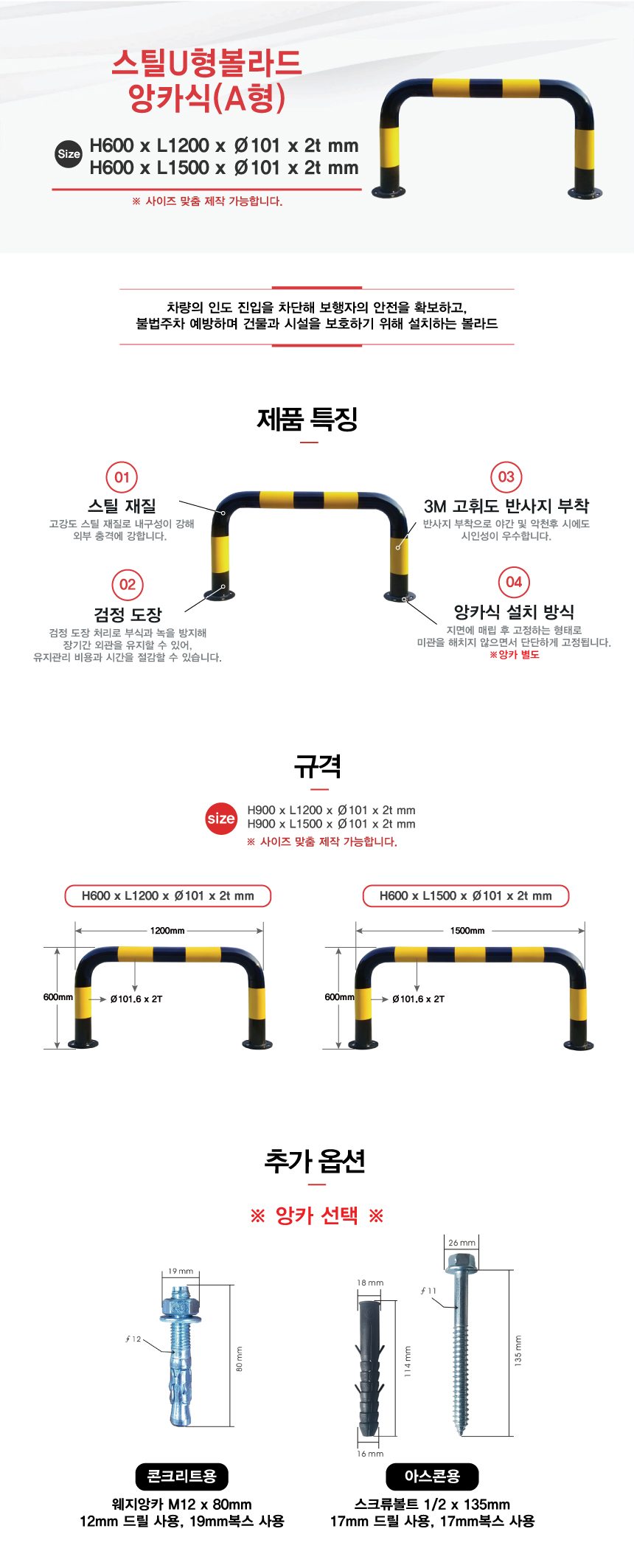 [H-46 추락방지(U형볼라드) 스틸U형볼라드 (특수 사이즈 주문가능)] 스틸U형볼라드 앙카식(A형)
