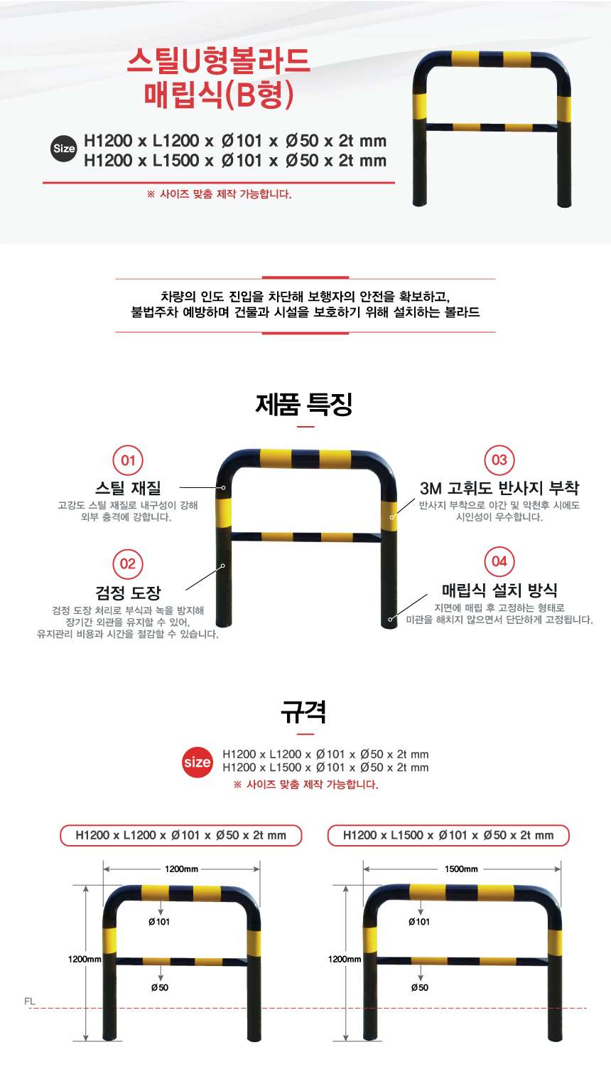 [H-46 추락방지(U형볼라드) 스틸U형볼라드 (특수 사이즈 주문가능)] 스틸U형볼라드 매립식(B형)