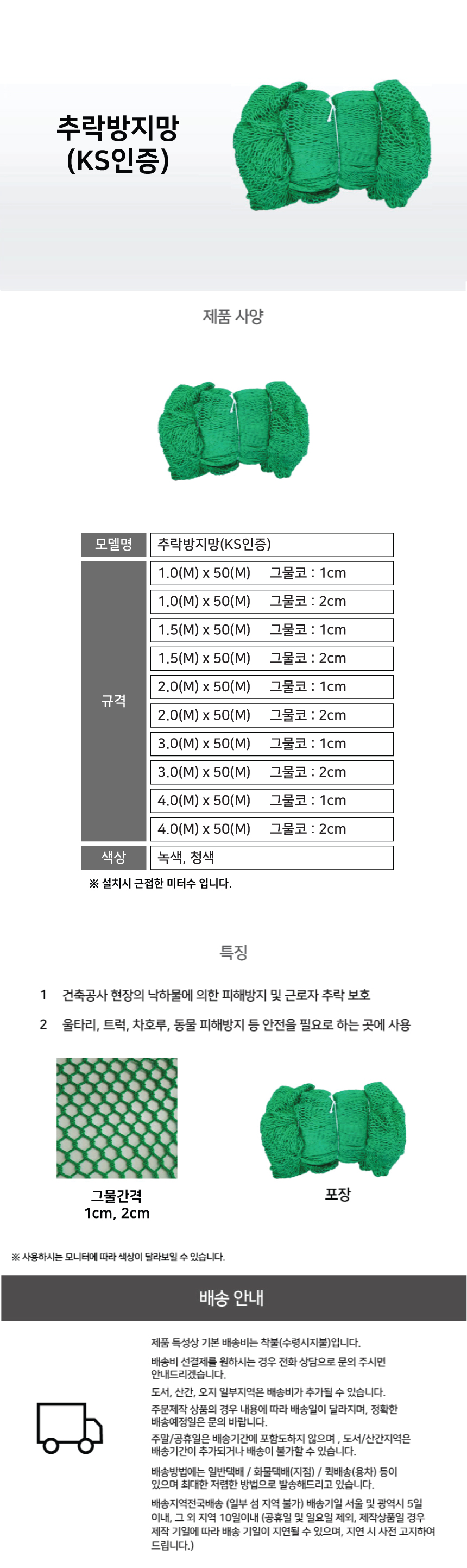 그물코 : 1cm x 1cm / 2cm x 2cm