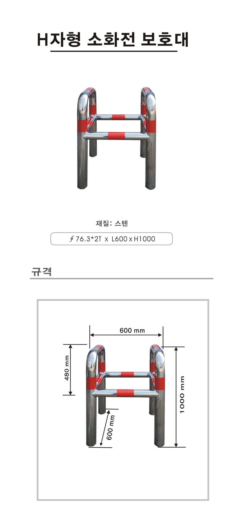 [H-42 소화전(기)보호함 스텐소화전보호대] H자형 소화전보호대