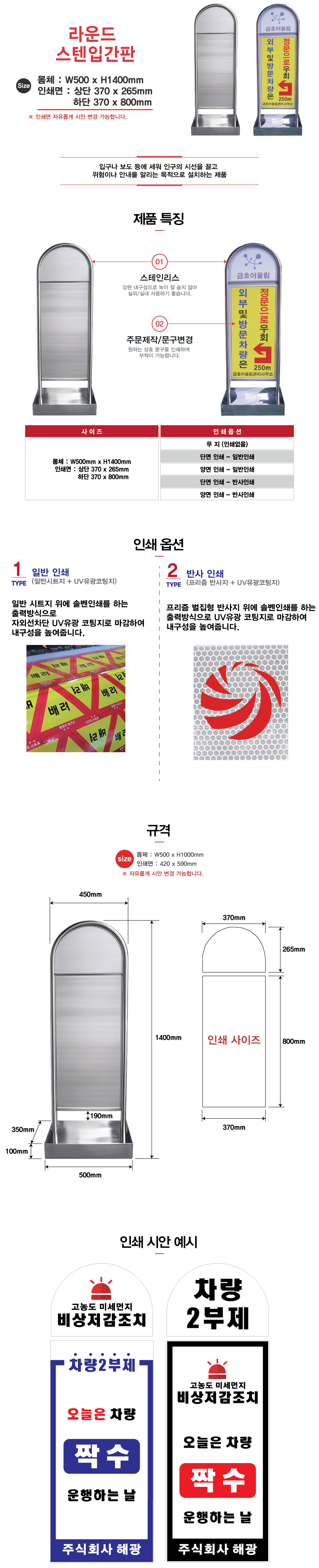 [H-18 스텐입간판 스텐입간판 (특수 사이즈 주문가능)] 라운드스텐 NO-2