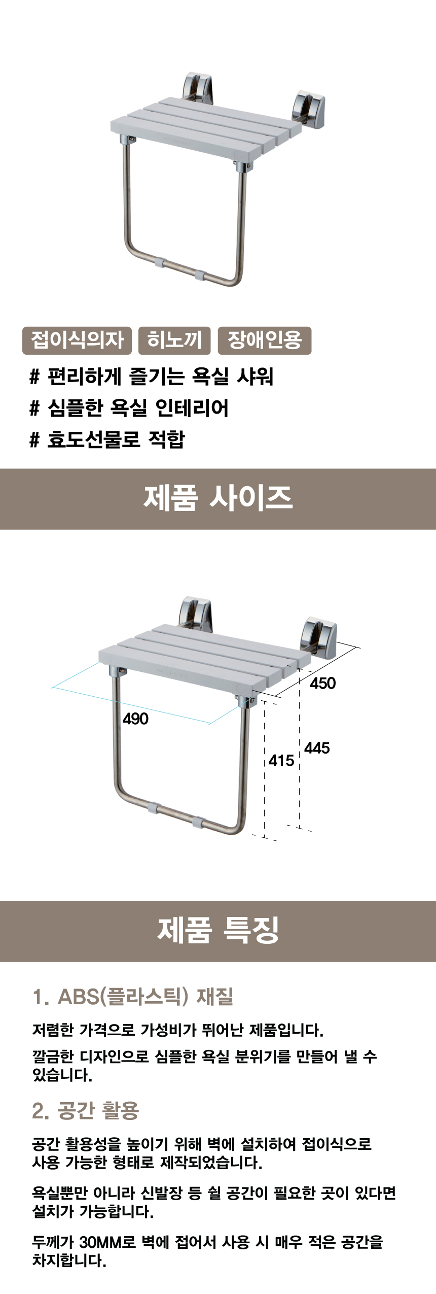 [H-31 샤워의자/접이식의자 샤워의자/접이식의자] 장애인전용의자-ABS(BF용)