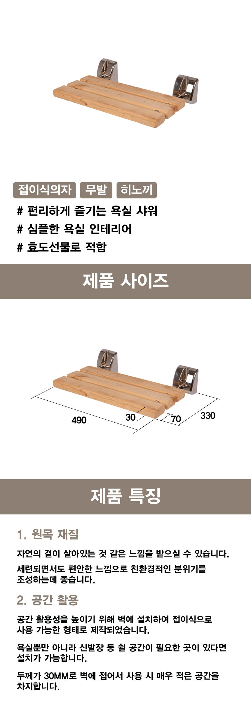 [H-31 샤워의자/접이식의자 샤워의자/접이식의자] 접이식의자(무발)-히노끼