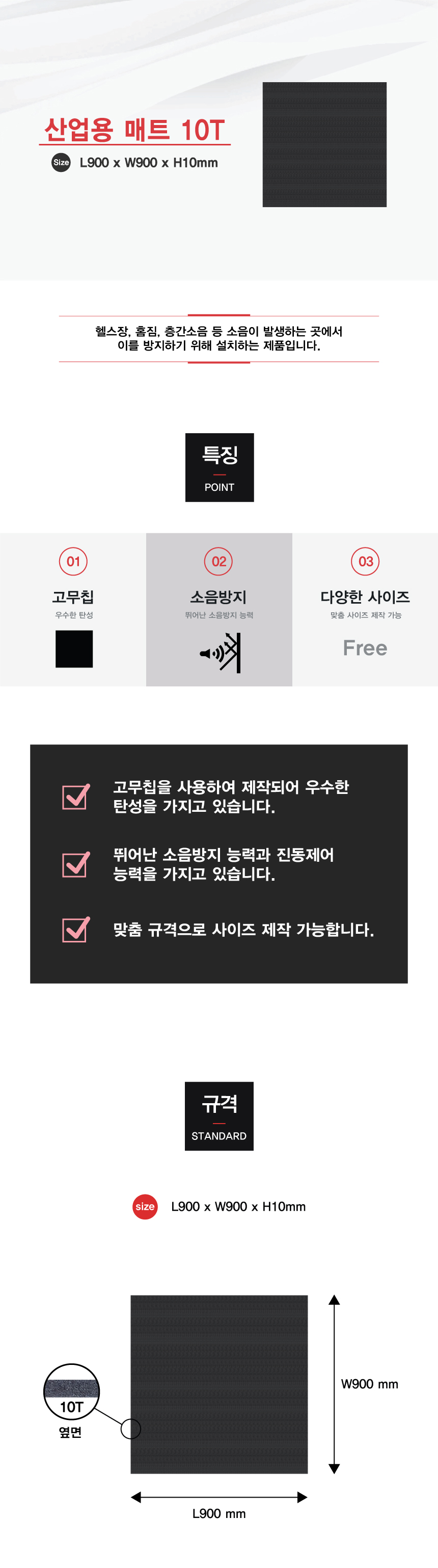 규격 900 x 900 x 10mm (기타 규격 주문 가능)