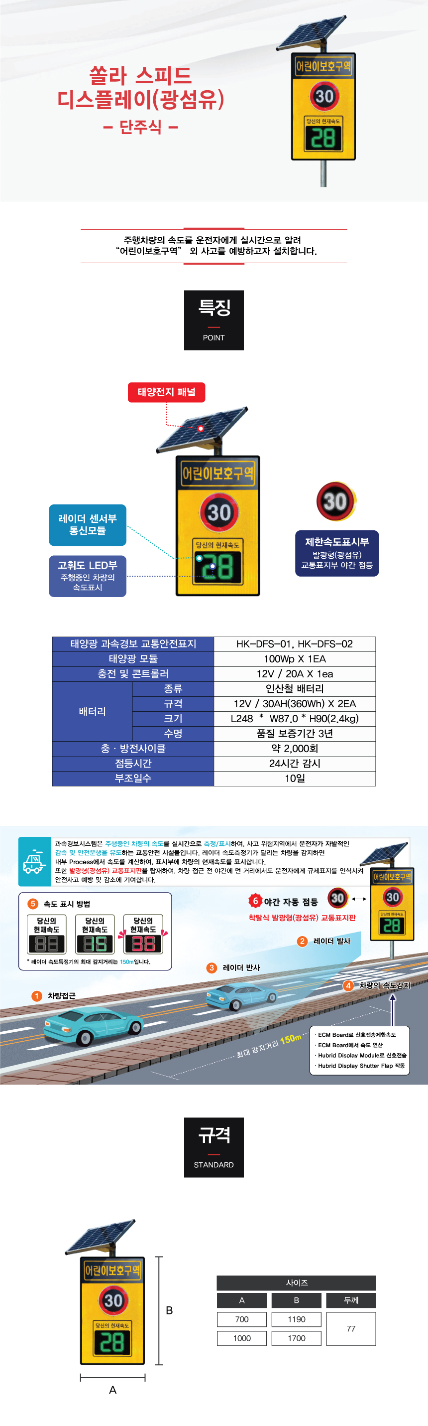 교통표지판/발광형표지판 교통안전표지판(발광형 광섬유)] 쏠라 스피드 디스플레이(광섬유)/단주식