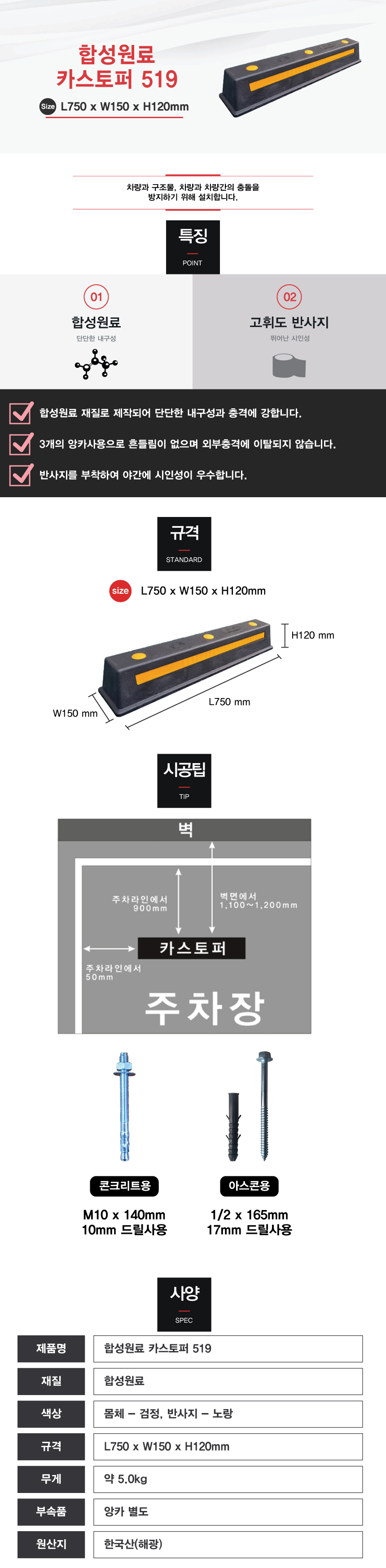 [H-2 카스토퍼(주차블럭) 합성수지 카스토퍼] 합성원료 카스토퍼 519