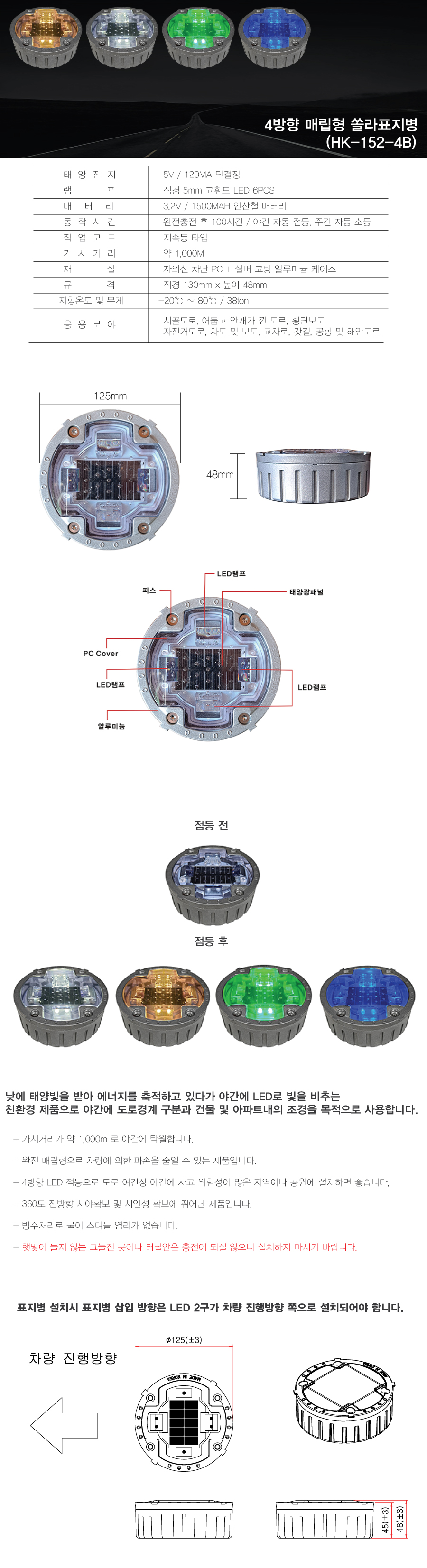 [H-15 표지병(쏠라) ] 매립쏠라표지병(HK-152)-4방향