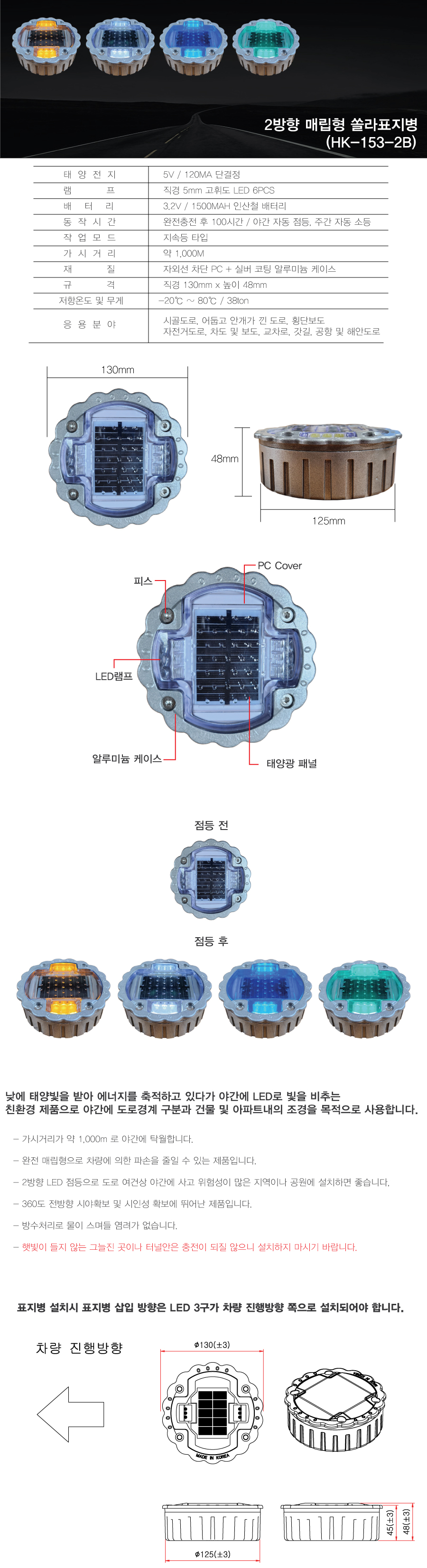 [H-15 표지병(쏠라) ] 매립쏠라표지병(HK-153)-2방향