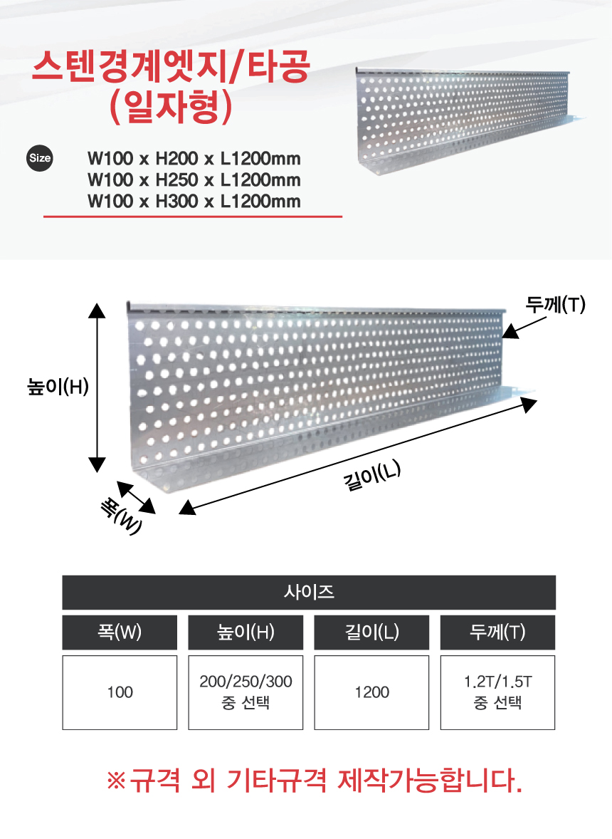 모델명 스텐경계엣지/타공 (일자형)