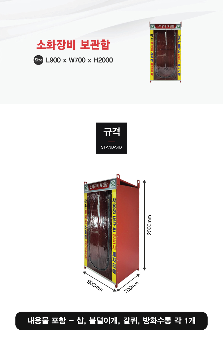 삽, 불털이개, 갈퀴, 방화수통 각 1개 포함