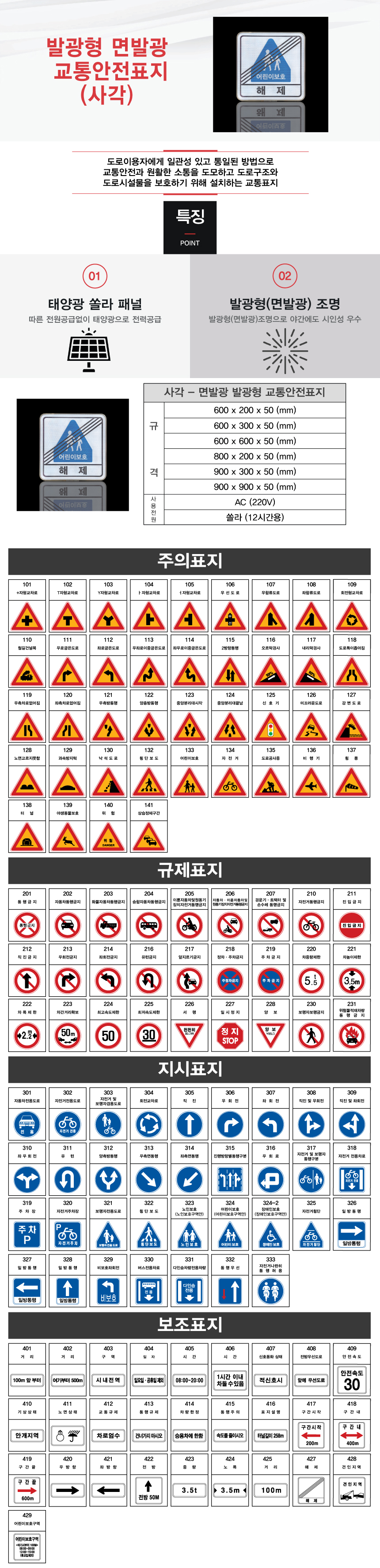 교통표지판/발광형표지판 교통안전표지판(발광형 내부조명식)] 사각표지(내부조명)