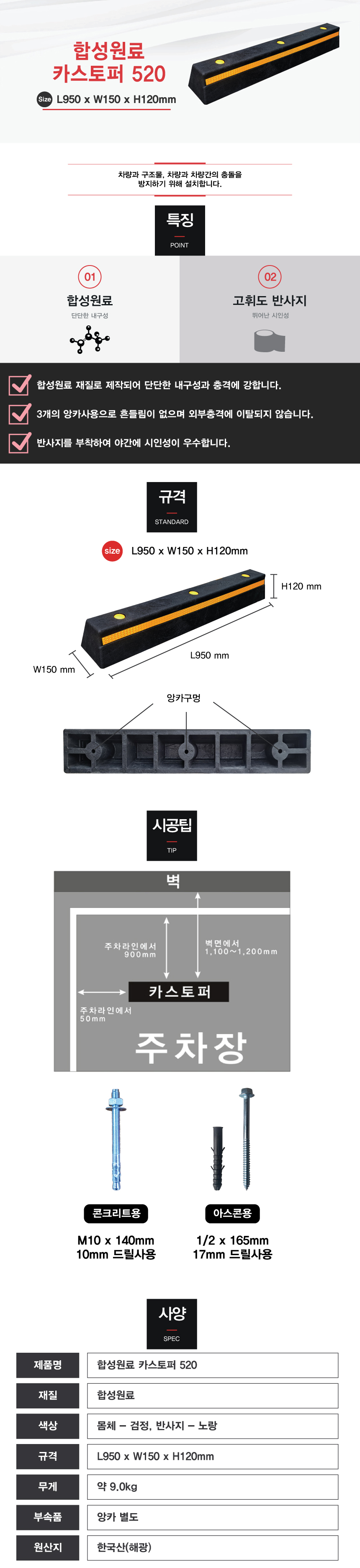 [H-2 카스토퍼(주차블럭) 합성수지 카스토퍼] 합성원료 카스토퍼 520