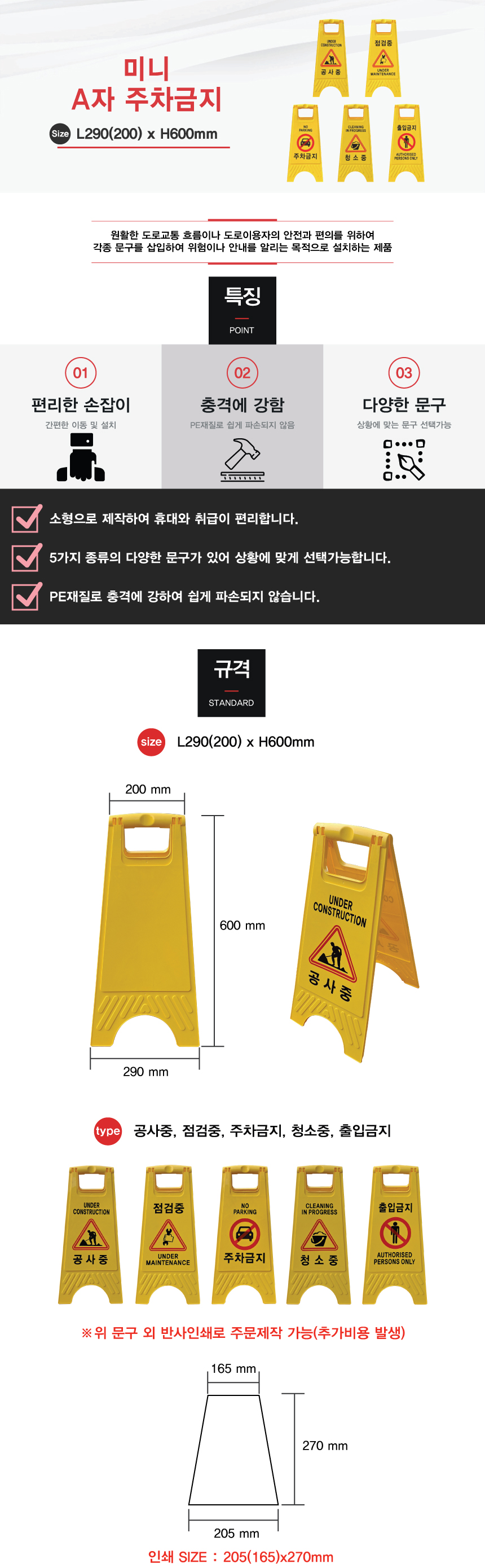 일반인쇄(공사중,주차금지,청소중,점검중,출입금지)