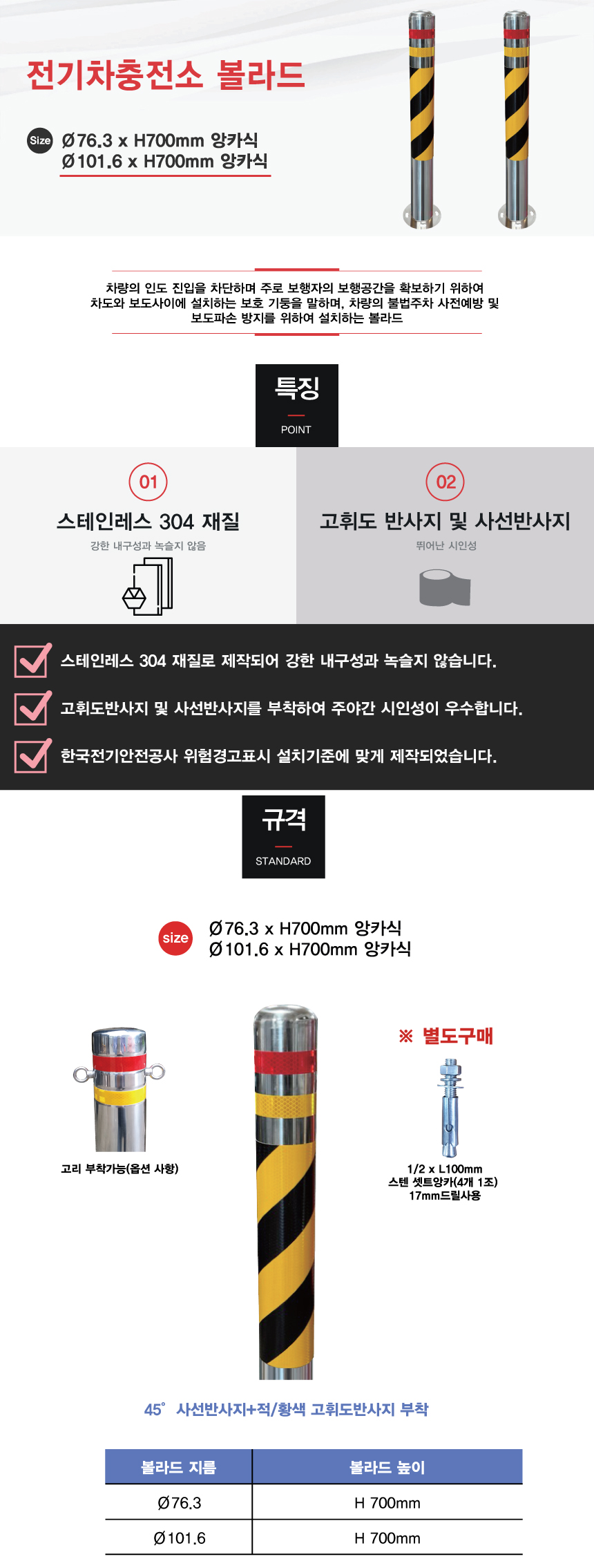 [H-10 스텐(스틸)볼라드 스텐볼라드 (특수 사이즈 주문가능)] 전기차충전소 볼라드(앙카식)
