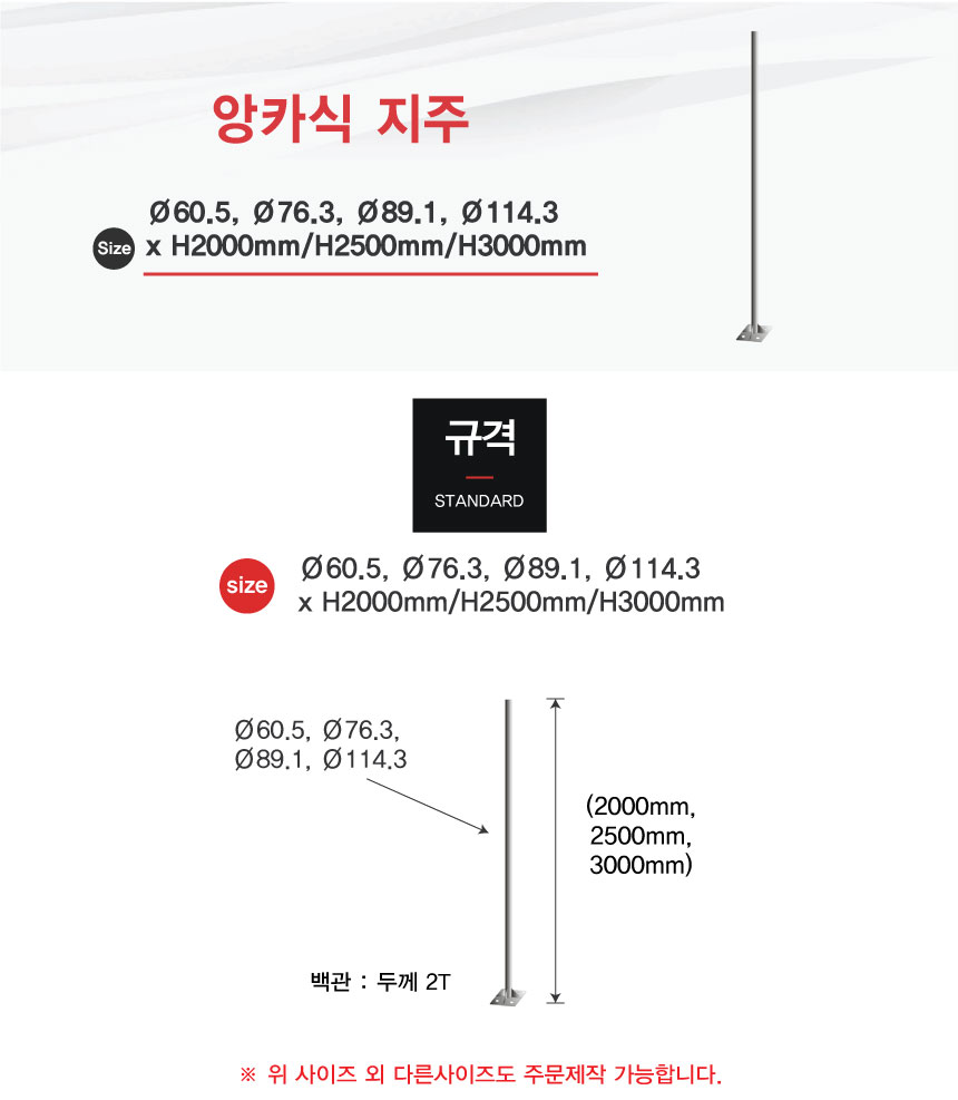 Ø60, Ø76, Ø89, Ø114 x H2000/2500/3000mm
