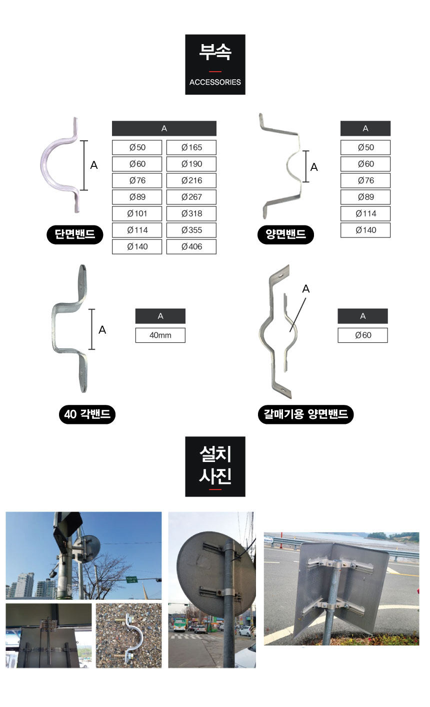 교통표지판/발광형표지판 안전표지판 지주] 40 각밴드