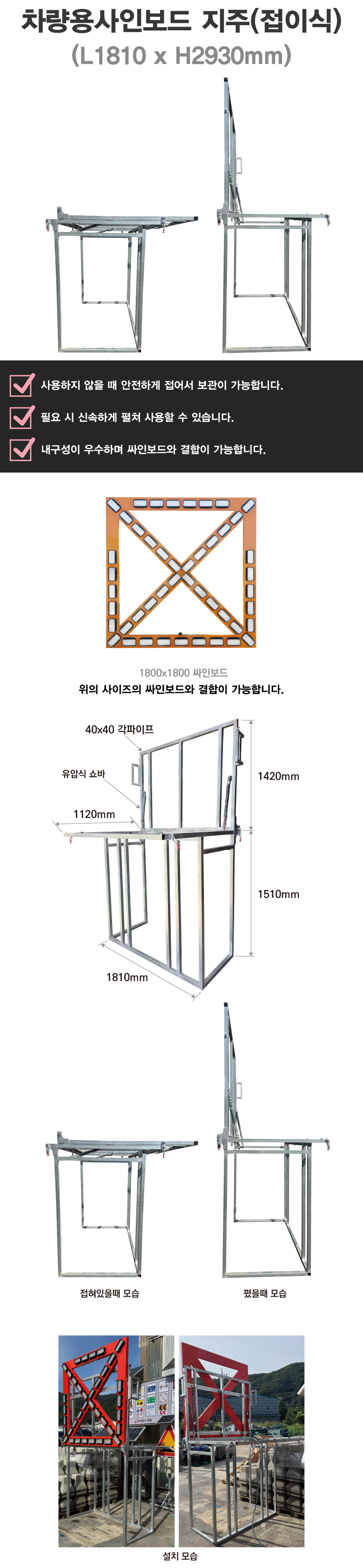 [H-53 싸인보드점멸표지 차량용 싸인보드] 사각싸인보드지주(접이식)1800용