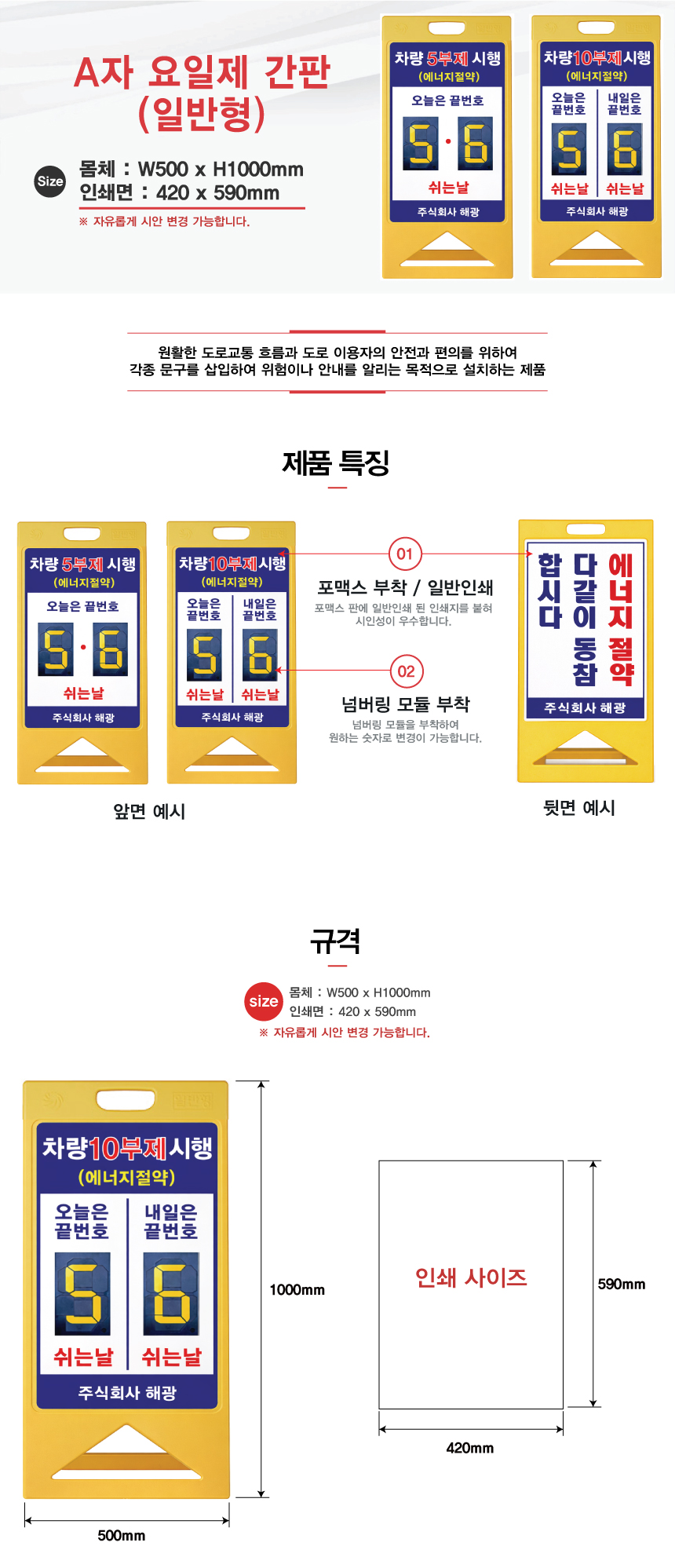 모델명 A자 요일제 간판(일반형)