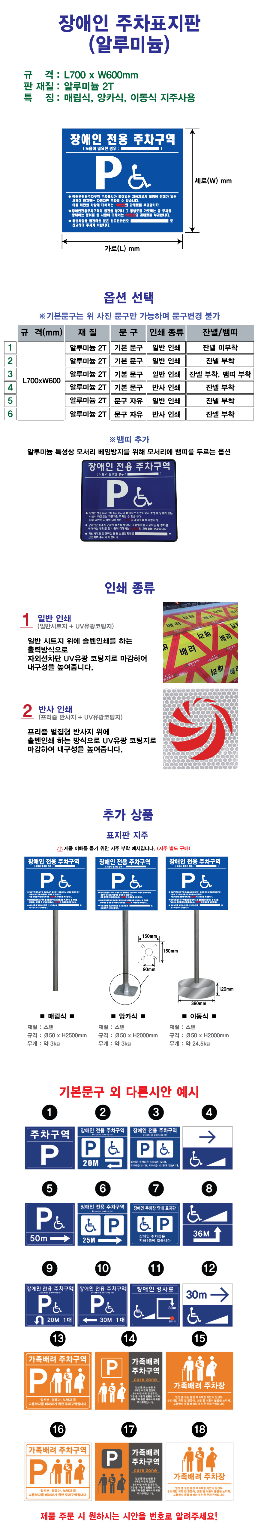 [H-30 장애인편의시설 장애인 주차표지판/가족배려 주차판] 장애인 주차표지판