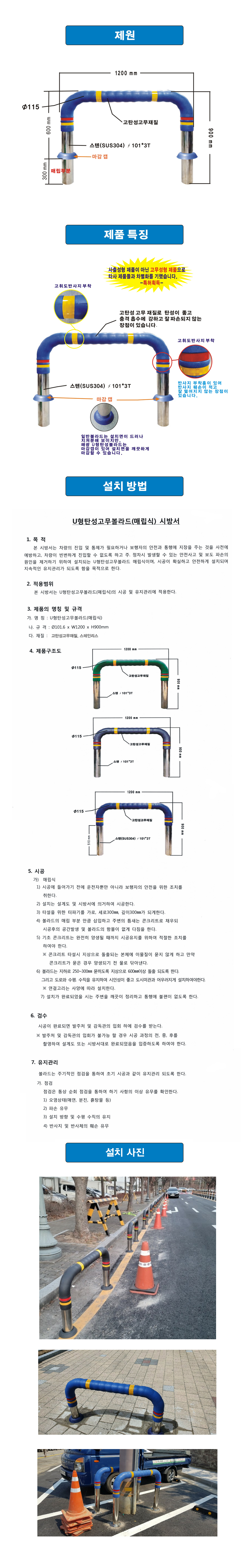 [H-46 추락방지(U형볼라드) 탄성U형볼라드] U형탄성볼라드매립식
