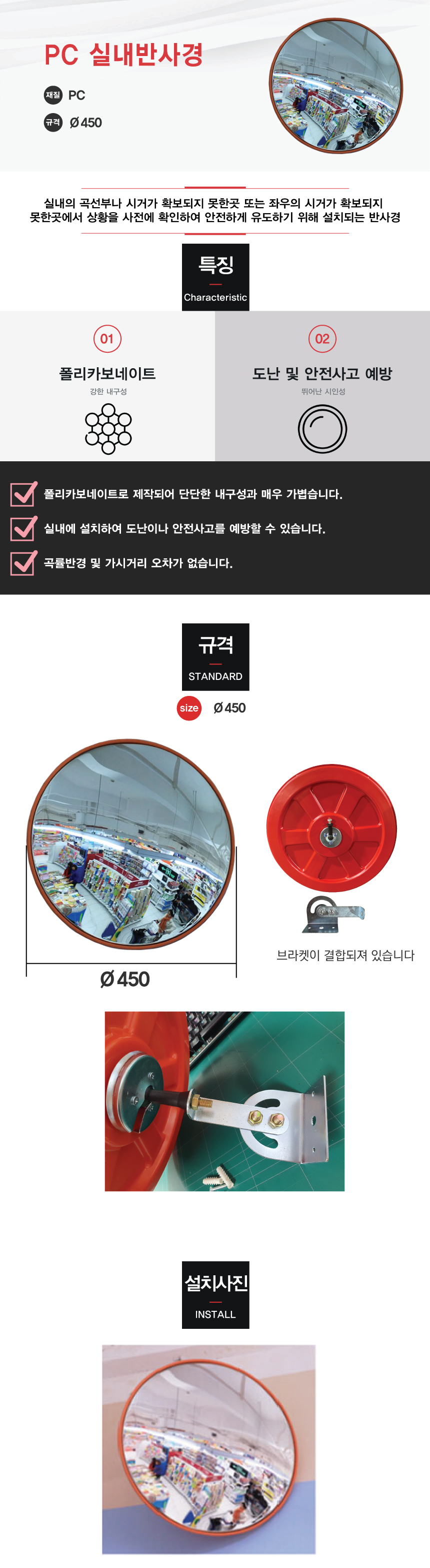 [H-13 반사경 PC / 아크릴 실내 반사경] PC실내반사경 Ø450