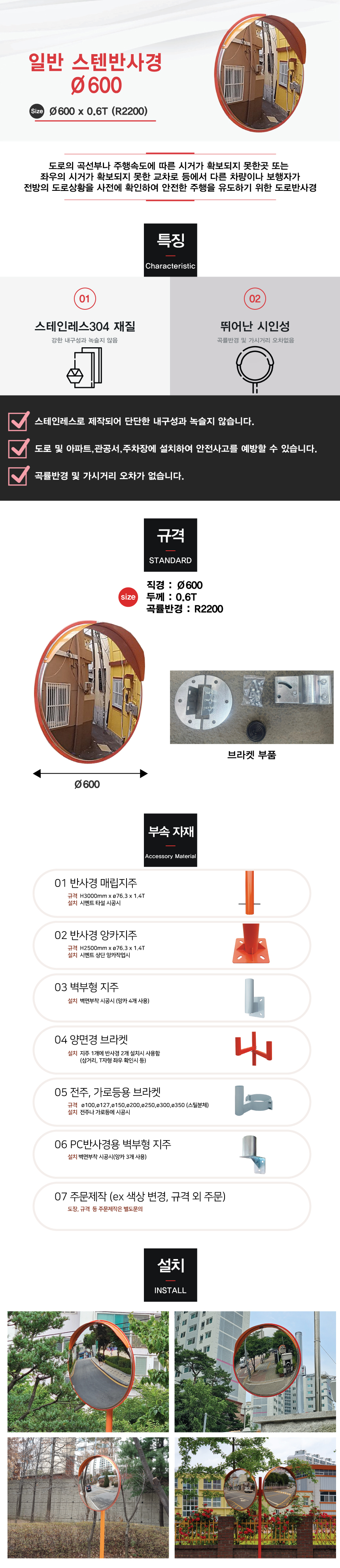 [H-13 반사경 스텐 반사경(일반형)/아파트,상가건물,빌딩등 설치권장함] 일반스텐반사경Ø600
