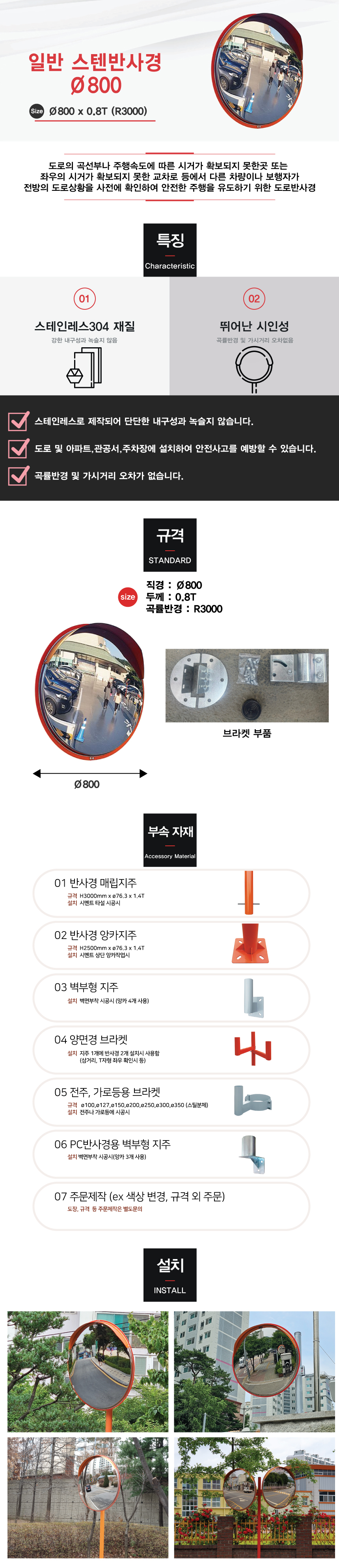 [H-13 반사경 스텐 반사경(일반형)/아파트,상가건물,빌딩등 설치권장함] 일반스텐반사경Ø800