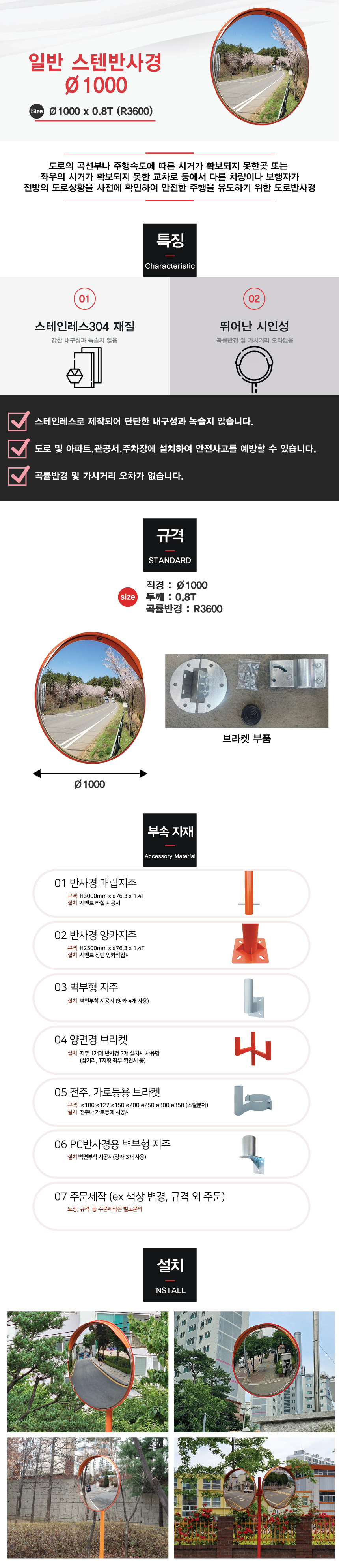 [H-13 반사경 스텐 반사경(일반형)/아파트,상가건물,빌딩등 설치권장함] 일반스텐반사경Ø1000