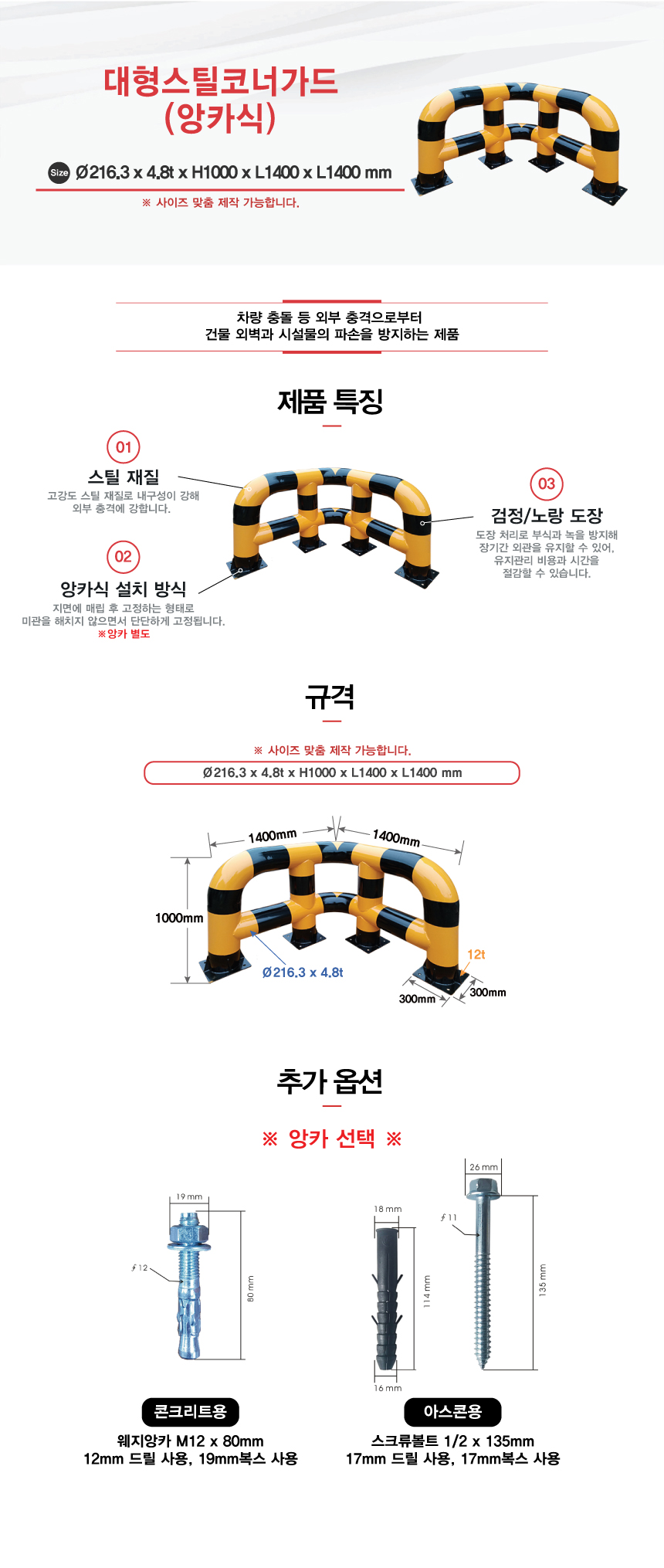 [H-46 추락방지(U형볼라드) 스틸U형볼라드 (특수 사이즈 주문가능)] 대형스틸코너가드(앙카식)