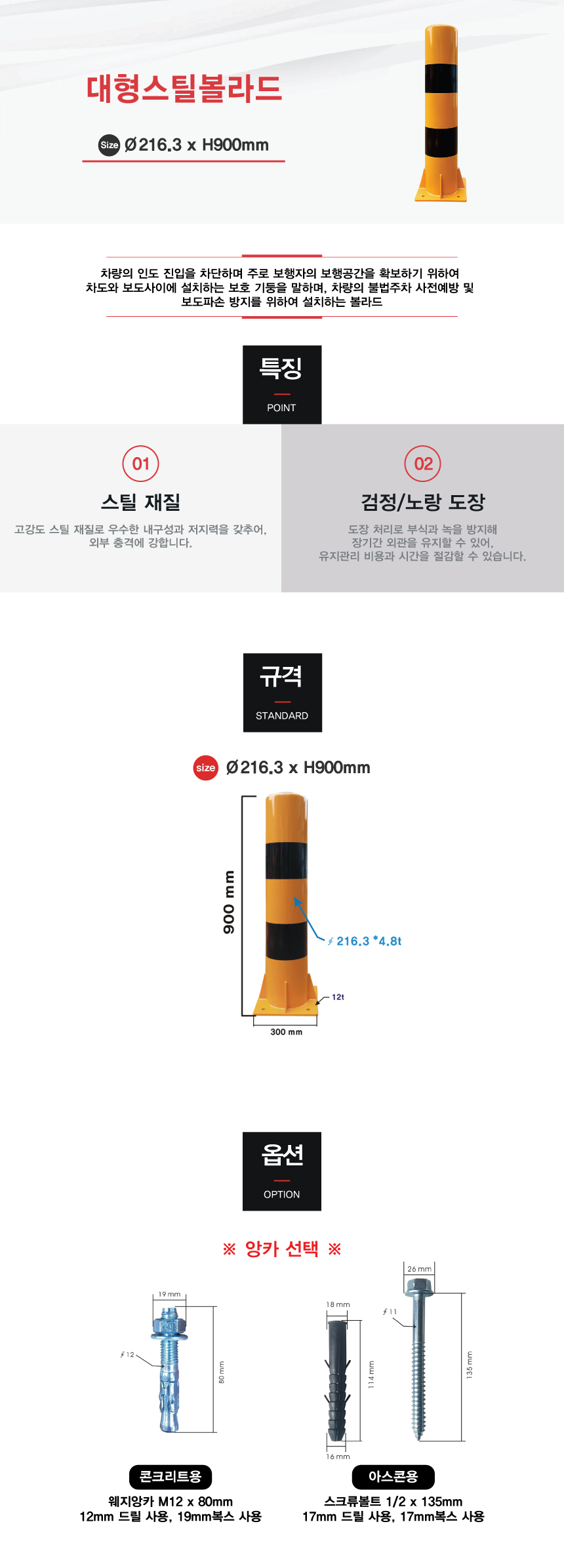 [H-10 스텐(스틸)볼라드 스틸볼라드 (특수 사이즈 주문가능)] 대형스틸볼라드