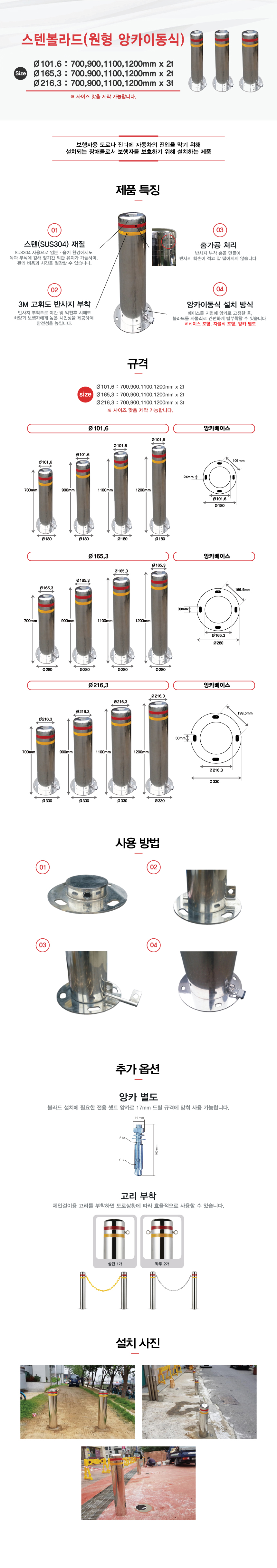 모델명 Ø101스텐볼라드앙카이동식/원형