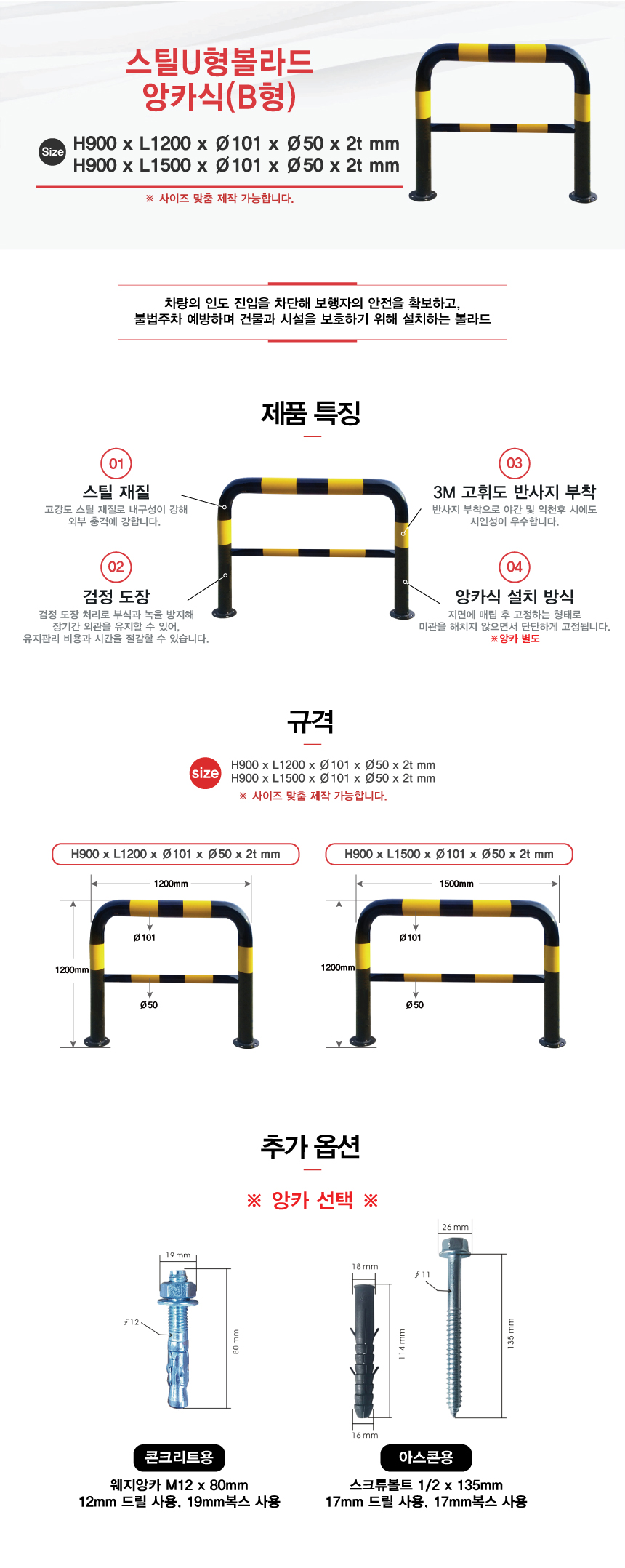 [H-46 추락방지(U형볼라드) 스틸U형볼라드 (특수 사이즈 주문가능)] 스틸U형볼라드 앙카식(B형)