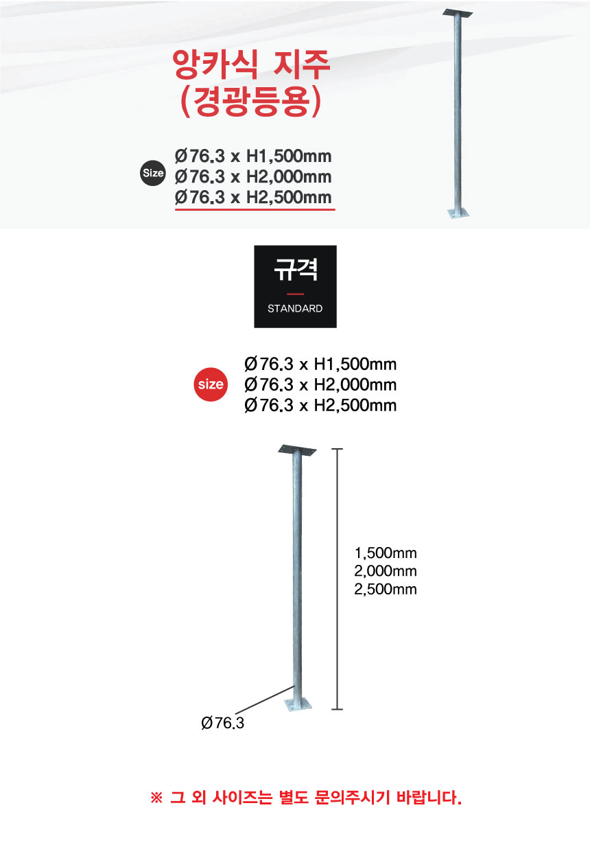 Ø76.3 x H1500mm, Ø76.3 x H2000mm, Ø76.3 x H2500mm