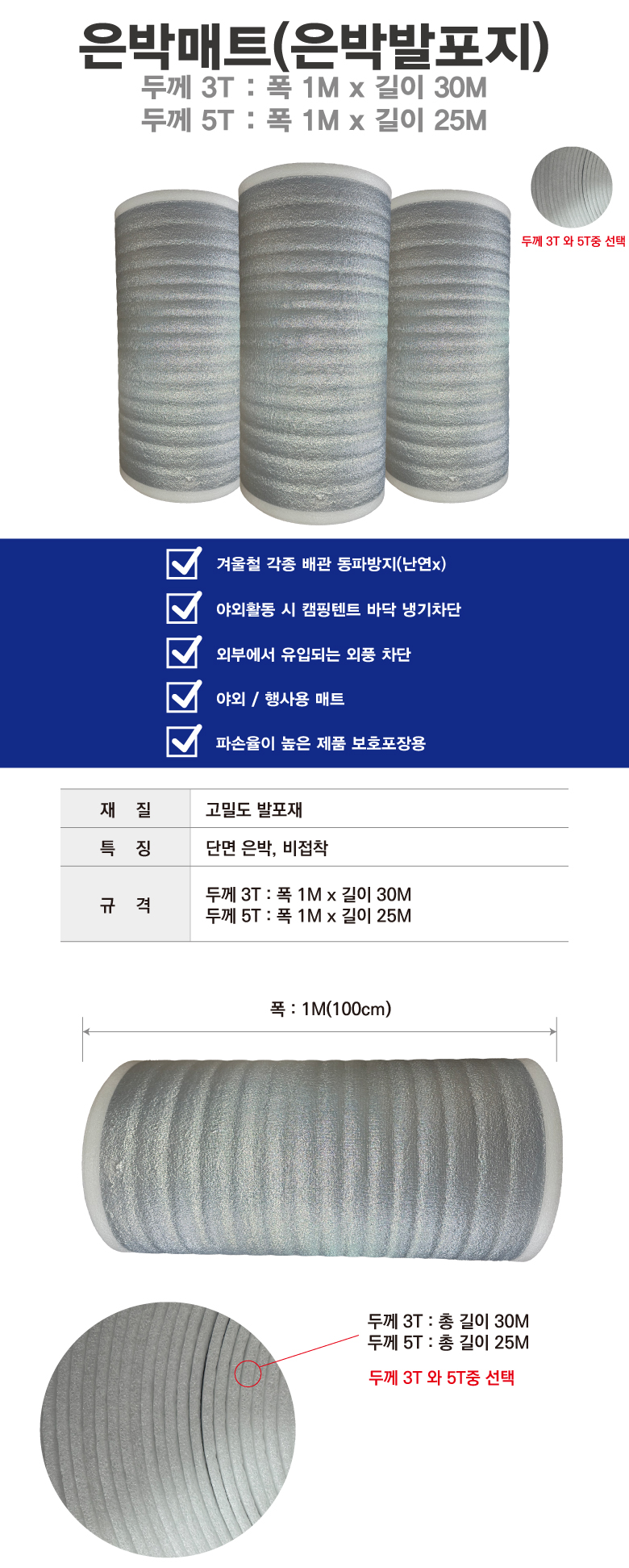 규격 두께 3T : 폭 1M x 길이 30M