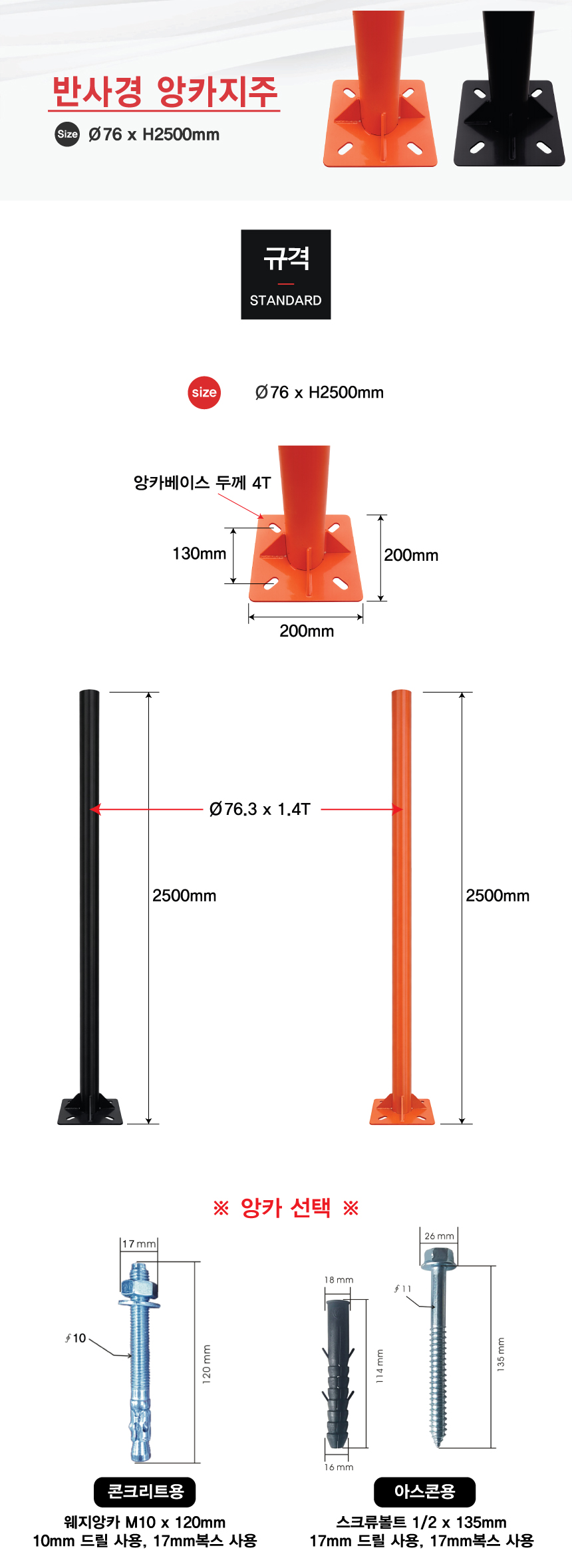 모델명 반사경앙카지주(검정)