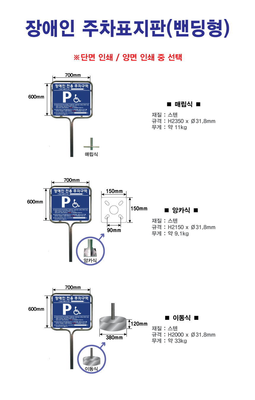 품명 장애인주차표지판(밴딩형) 매립식
