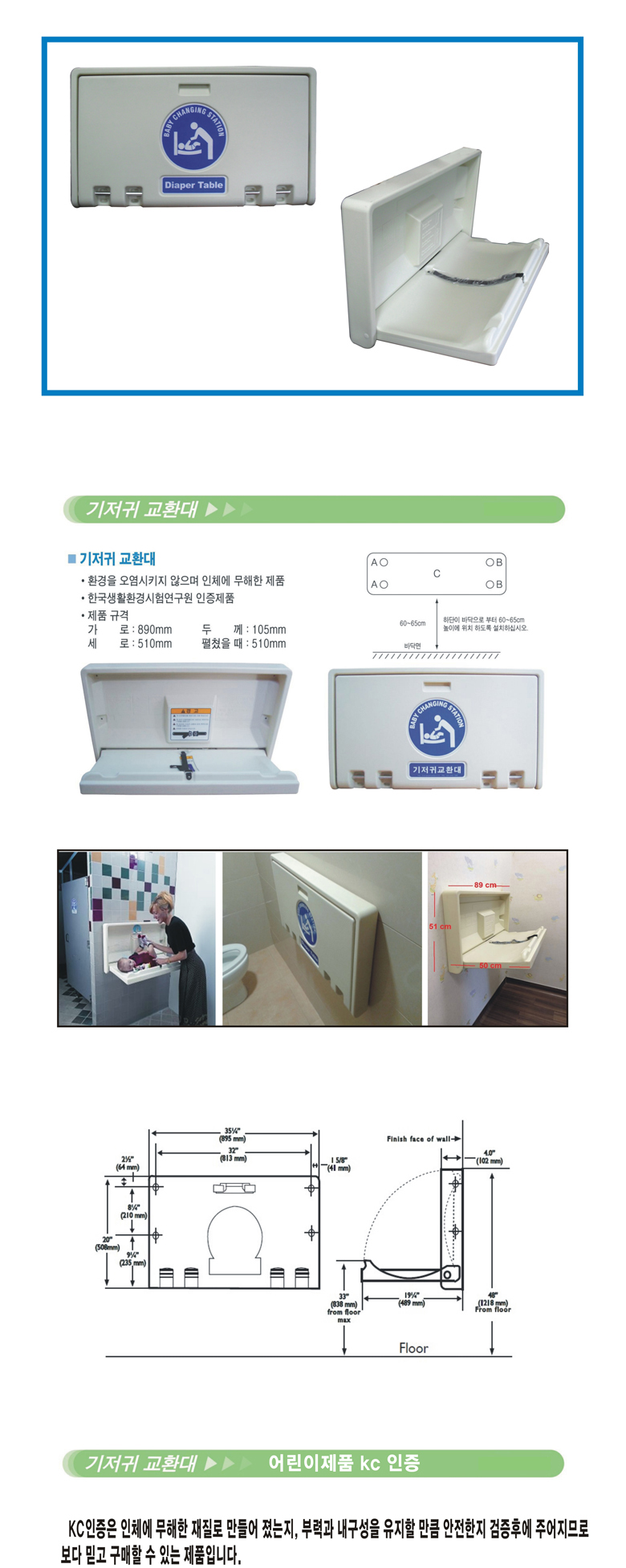 품명 기저귀교환대A형(가로형)