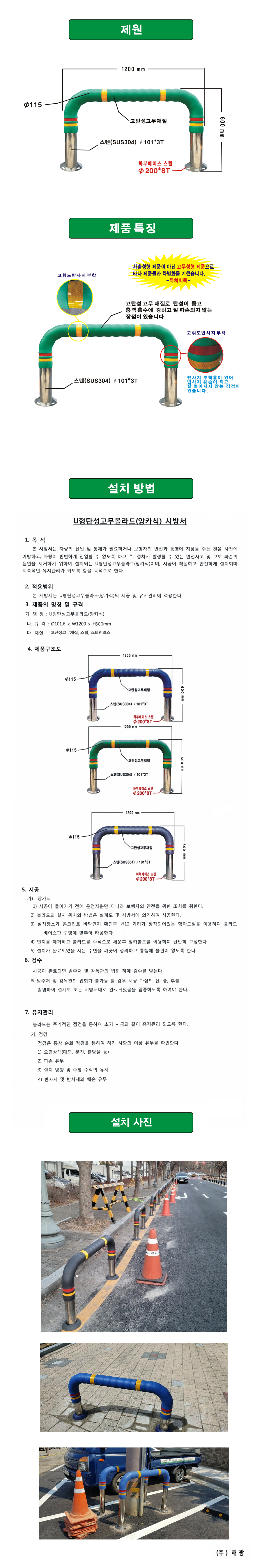 [H-46 추락방지(U형볼라드) 탄성U형볼라드] U형탄성볼라드앙카식